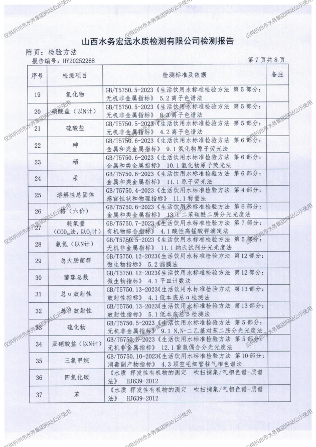 忻州城區(qū)公共供水水源水、出廠水、管網(wǎng)水、管網(wǎng)末梢水2025年12月份水質(zhì)信息公示
